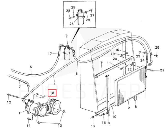 Pasek klinowy sprężarki klimatyzacji pasuje do maszyn leśnych takich jak: