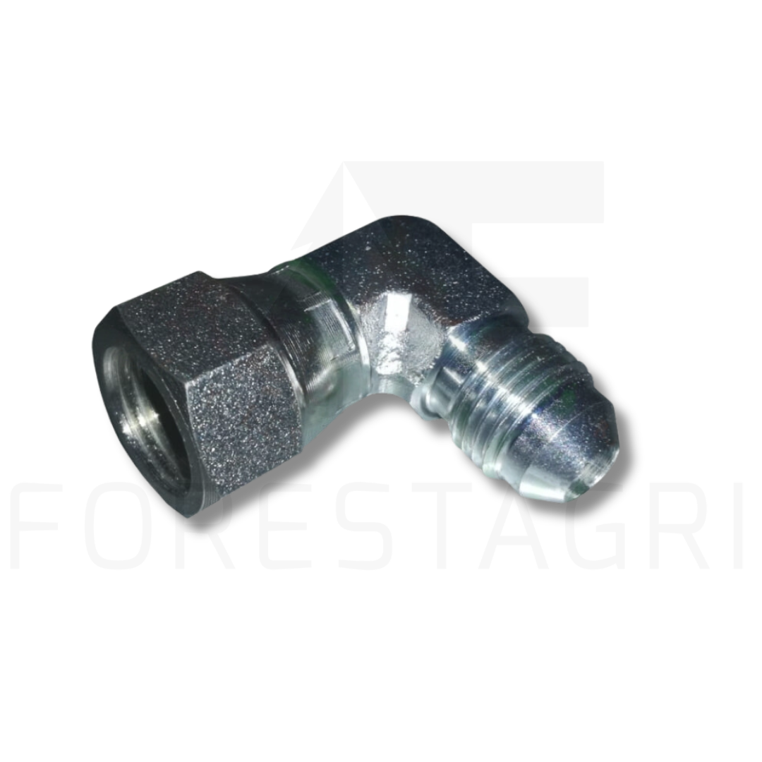 Wysokiej kolanko stosowane do łączenia przewodów w hydraulice maszyn leśnych. Zapewnia efektywne przekazywanie płynów.