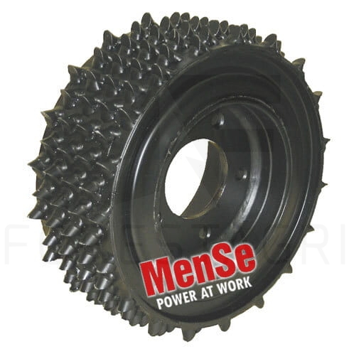 Amortyzowane rolki z gumą zmniejszają hałas i drgania w kabinie harwestera, tłumiąc wibracje i zwiększając komfort operatora. Pozytywne efekty amortyzacji gumowej są szczególnie widoczne podczas pracy z twardymi gatunkami drewna. Tłumienie drgań zwiększa precyzję chwytu i poprawia trakcję. Asymetryczne kolce wykonane z odpornej na zużycie stali zapewniają maksymalną przyczepność podczas podawania drewna.