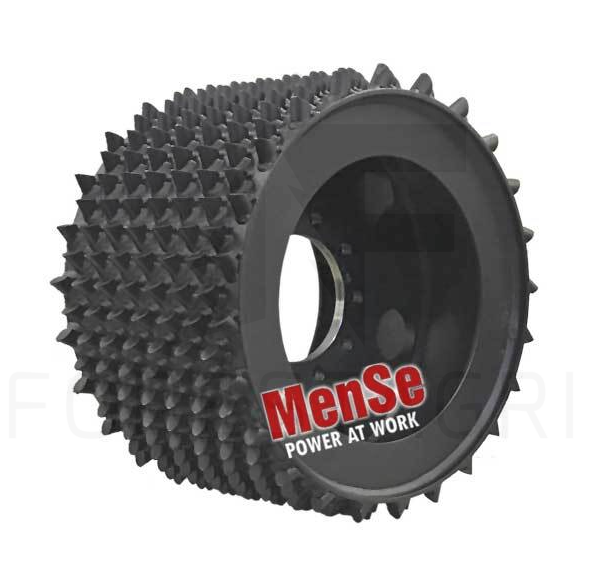 Kolce rolki podającej są wykonane z odpornej na zużycie stali. Asymetryczny kształt zapewnia maksymalną przyczepność podczas podawania pnia do przodu. Żywotność stalowej rolki podającej można łatwo wydłużyć, korzystając z usługi regeneracji MenSe.