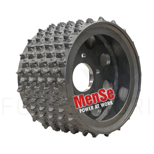 Kolce rolek podających są wykonane z odpornej na zużycie stali. Ich asymetryczny kształt zapewnia maksymalną przyczepność podczas podawania pnia do przodu. Żywotność stalowej rolki podającej można łatwo wydłużyć, korzystając z usługi regeneracji MenSe. Stalowa rolka jest podstawową, ekonomiczną i lekką opcją.