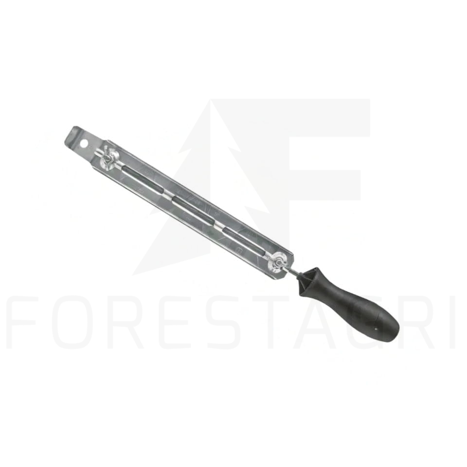 Uchwyt pilnika z podziałką stopni do precyzyjnej obróbki łańcucha. Pilniki wymienne. Każdy pilnik w zestawie razem z rączką. Ø pilnika (mm):4,0Długość (mm):215
