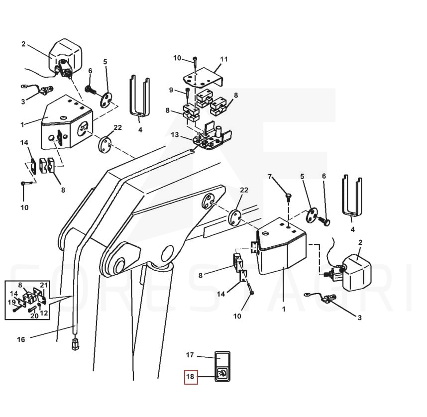 Używany przycisk włączania oświetlenia zamontowanego na żurawiu maszyny.