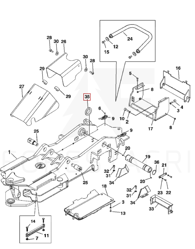 Podkładka pokrywy ramy przedniej w maszynie leśnej harvester 1270D.